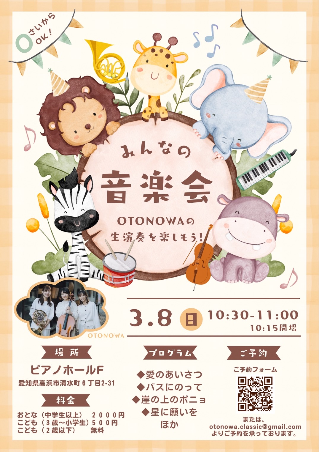 3月8日子供向けコンサート 先生出演情報 2026.02.19 3月8日 10:30〜 ピアノホールF 子供向けコンサートに出演します! お席に余裕がございますので是非ご家族でお越しください! 0歳の赤ちゃんから入れます🎵