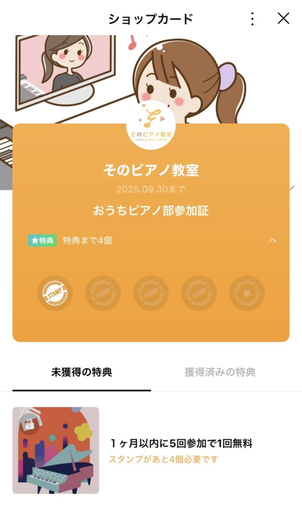 - step5練習終了後LINEの参加証にスタンプをおす。