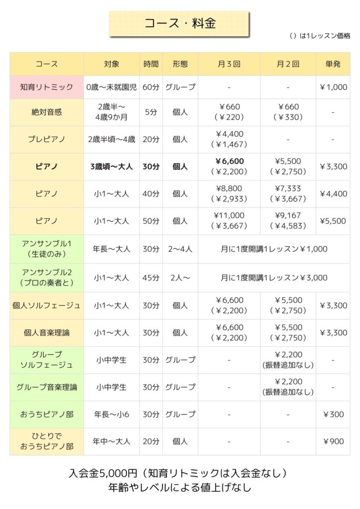 ほぼ100%の生徒さんが月3回30分の月額6,600円のコースです。